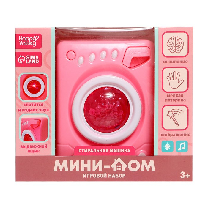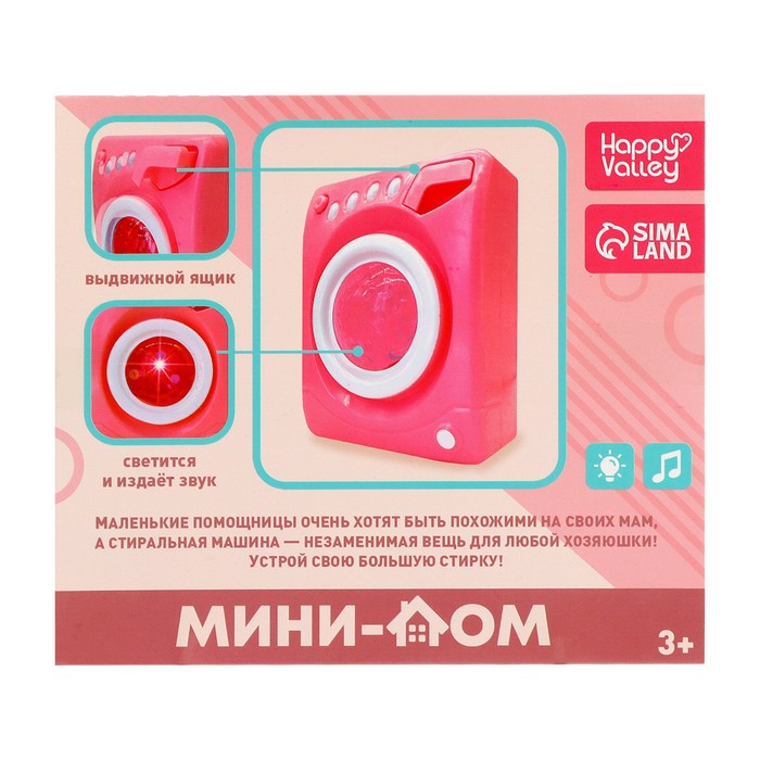 Бытовая техника «Стиральная машина», свет, звук, барабан вращается, цвет розовый