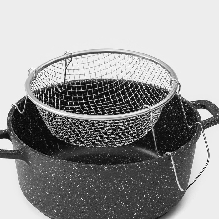 Фритюрница Доляна, d=22 см, со съёмной ручкой, цвет серебристый
