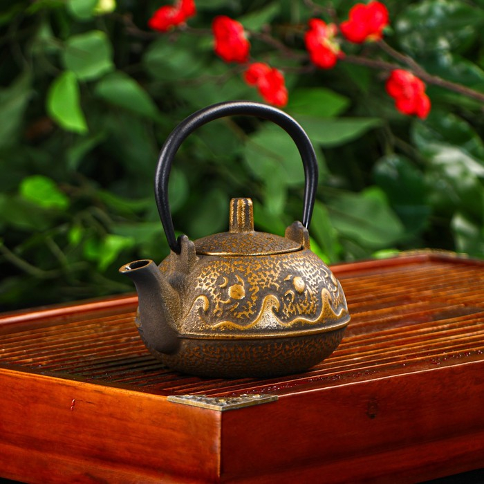 Чайник для плиты Доляна «Волна. Этно», 300 мл, с ситом, чугун, цвет бронзовый