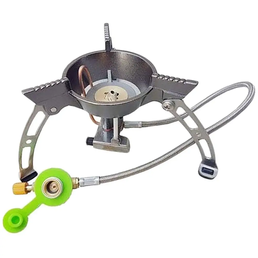 Туристическая горелка для пикника, в поход или кемпинг, на рыбалку или охоту. Благодаря функции прогрева газа горелка работает даже при температуре ниже 0 °С. Встроенный экран защищает пламя от порывов ветра и обеспечивает равномерное горение. Под ножки горелки добавлены прорезиненные подкладки: так она не скользит по траве и не царапает поверхность стола.Устройство работает на газовом баллоне с резьбовым соединением со сжиженным газом (в комплект не входит).