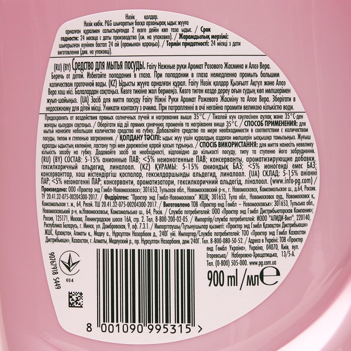 Средство для мытья посуды Fairy "Жасмин и алоэ вера", 900 мл