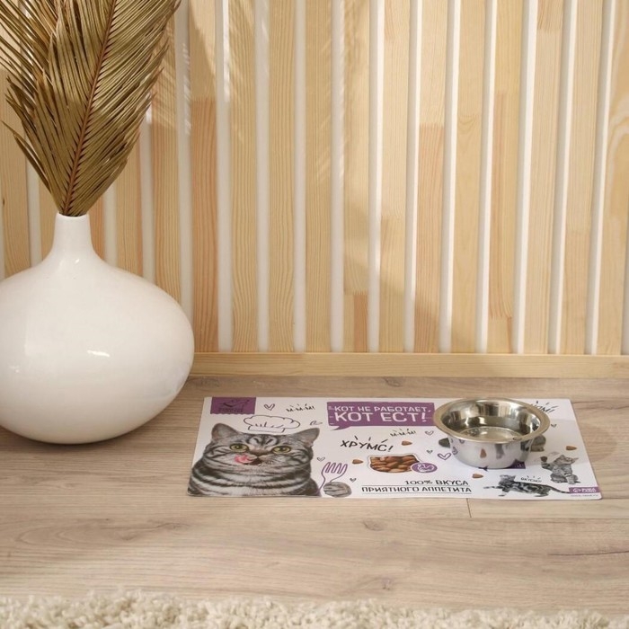 Коврик под миску «Кот не работает, кот ест!» 43х28 см