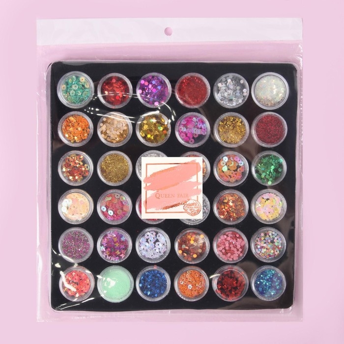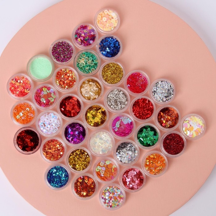 Набор для декора ногтей, в пластиковом органайзере, набор 36 баночек, разноцветные