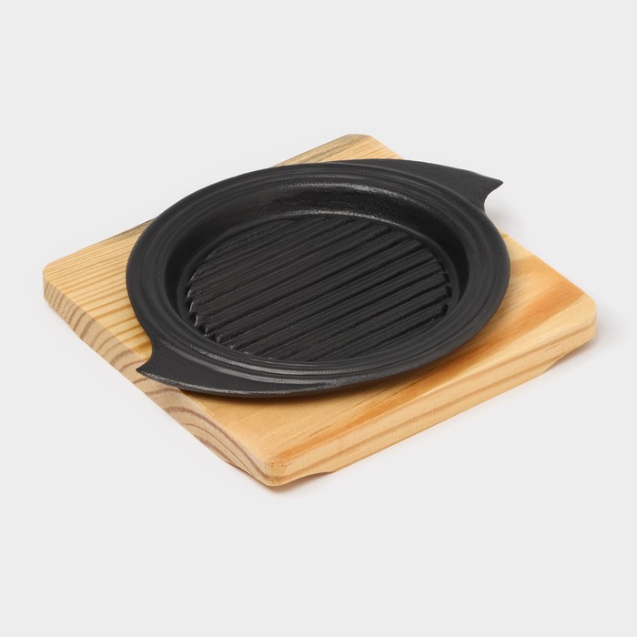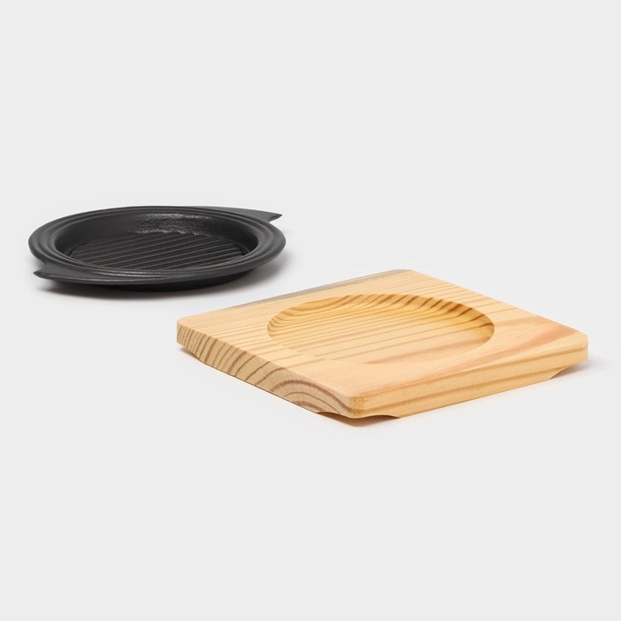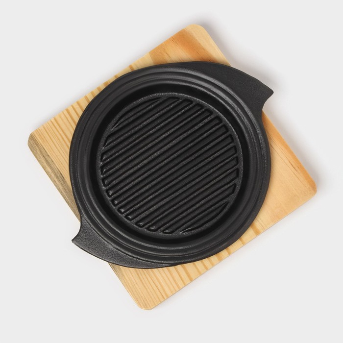 Сковорода чугунная на деревянной подставке «Круг. Восток Гриль», d=15 см, цвет чёрный
