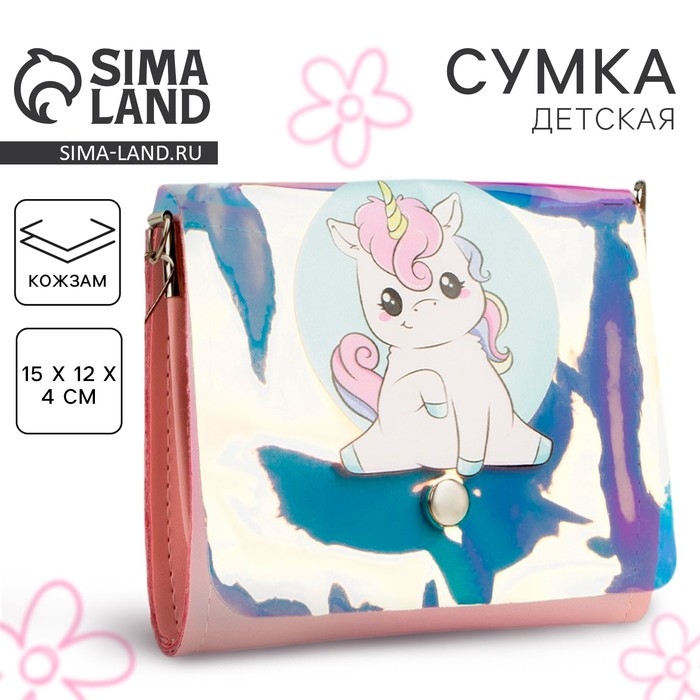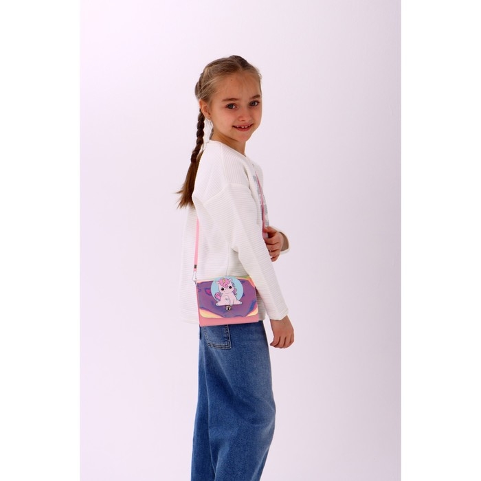 Сумка детская для девочки "Единорог" на клапане, цвет сиреневый