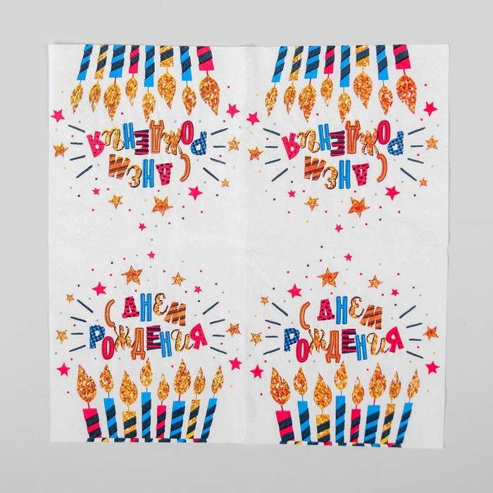 Cалфетки бумажные «С днём рождения», свечи, 25х25, набор 20 шт.