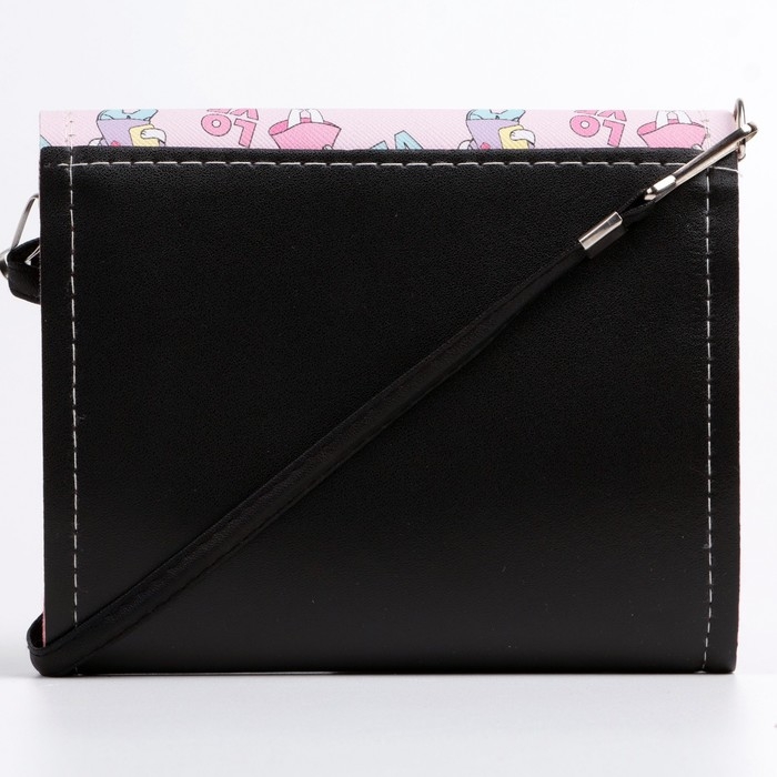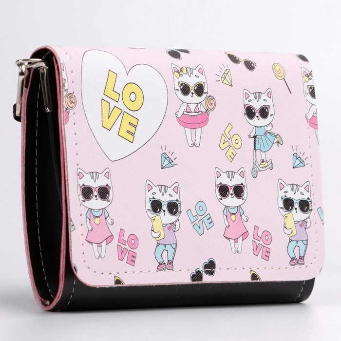Сумка детская для девочки "Кошечка", на клапане, цвет чёрный/розовый, 15х4х12 см