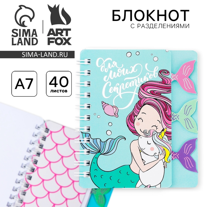 Блокнотик с разделителями "Русалочка", А7, 40 л