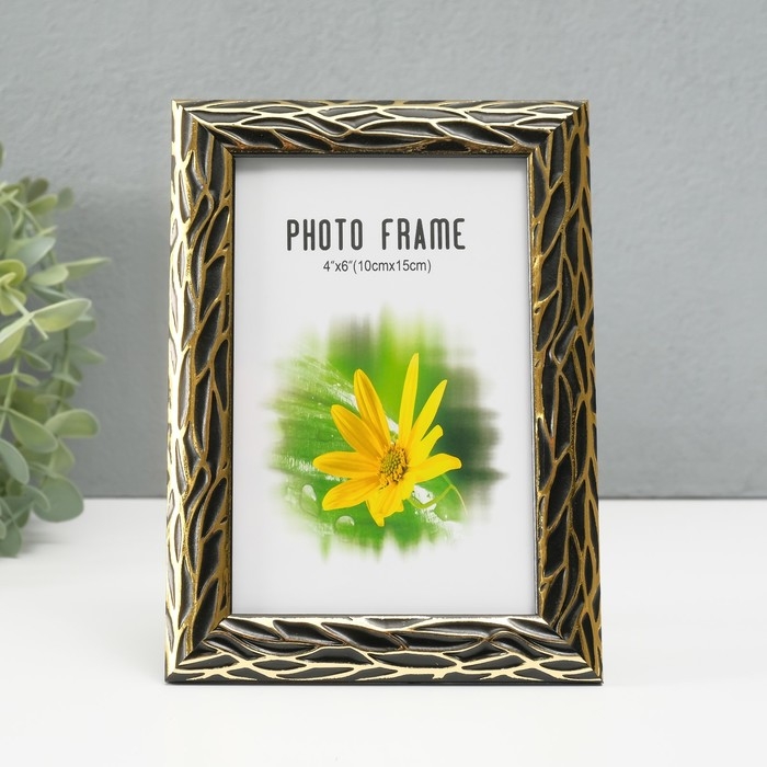 Фоторамка пластик 10х15 см "Корни" чёрная с золотом 19х14 см