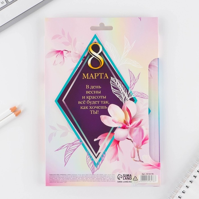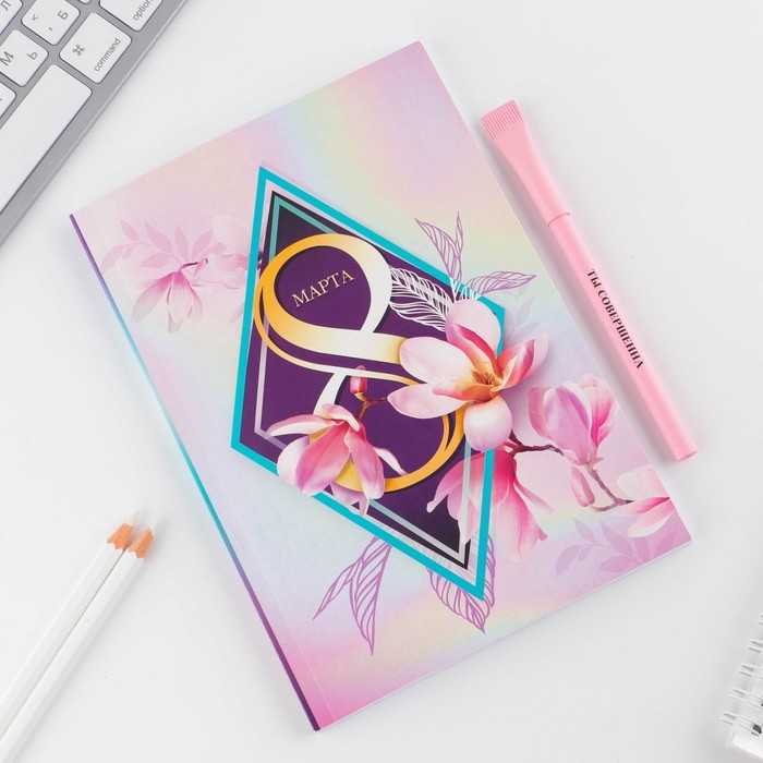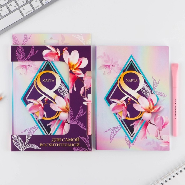 Подарочный набор «8 марта орхидея в ромбе »: ежедневник А5 80 листов и экоручка