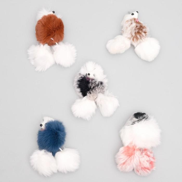 Мышка на ножках, из натурального меха кролика, 10 см, микс цветов