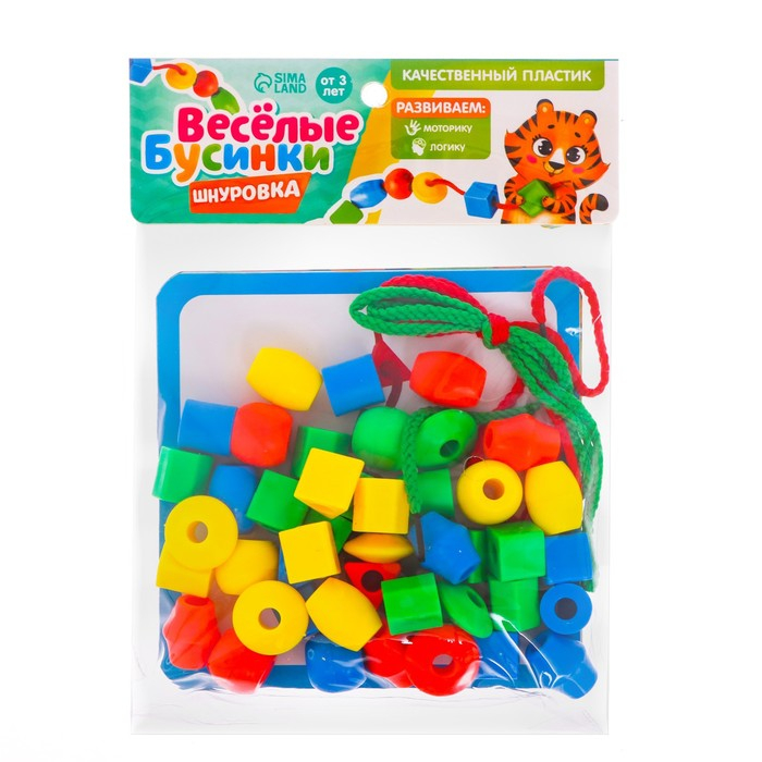 Шнуровка в банке «Весёлые бусинки», 60 шт., по методике Монтессори