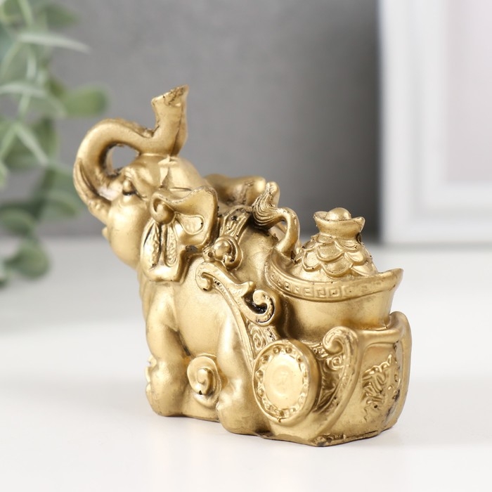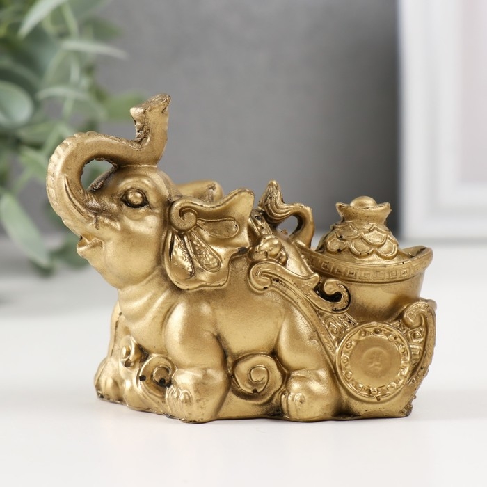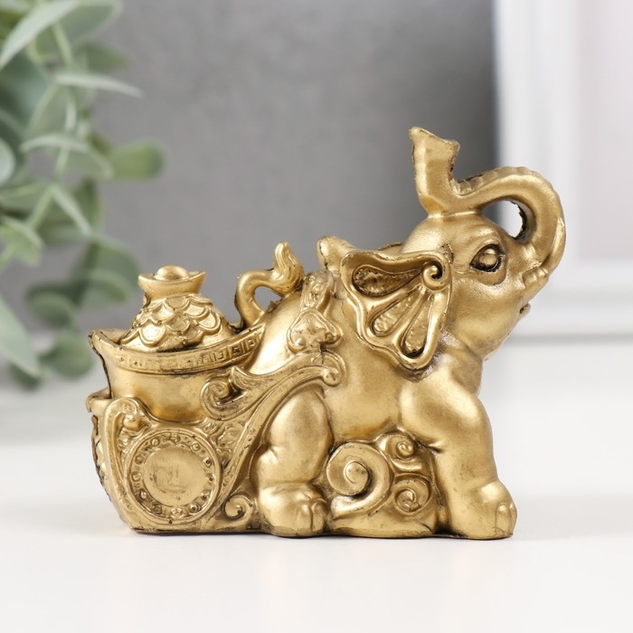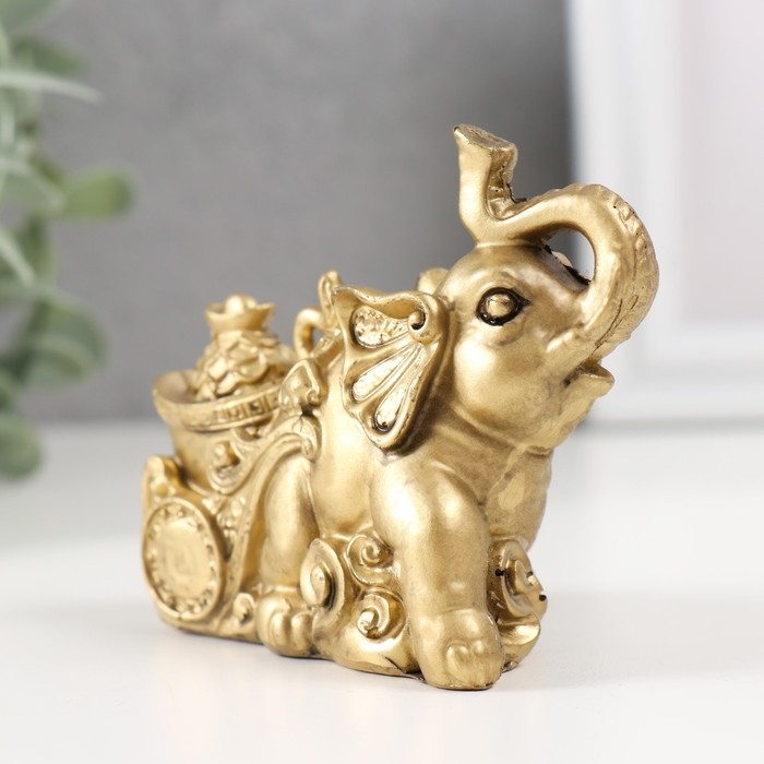 Нэцке полистоун под бронзу "Слон с тележкой золота" 7х4х8,5 см