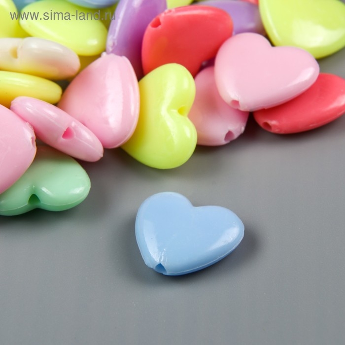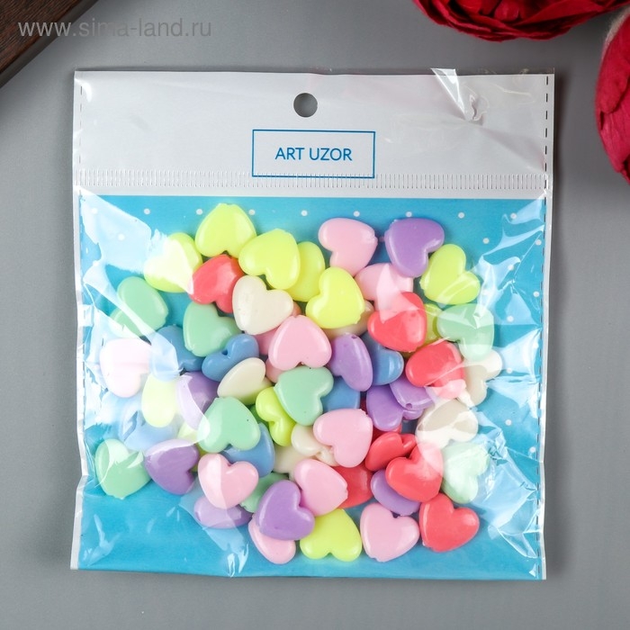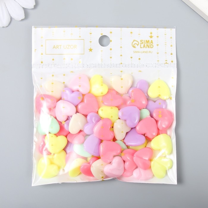 Набор бусин для творчества пластик "Сердечки - неоновые тона" набор 60 шт 1,3х1,5х0,5 см