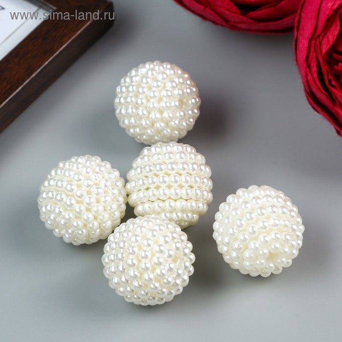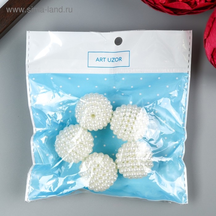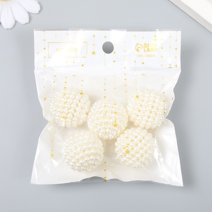 Бусины для творчества пластик "Барашковый жемчужный шарик" набор 5 шт 2,7х2,7х2,7 см