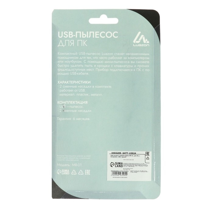 USB Пылесос LuazON MR-01, для ПК, с насадками, USB, чёрный