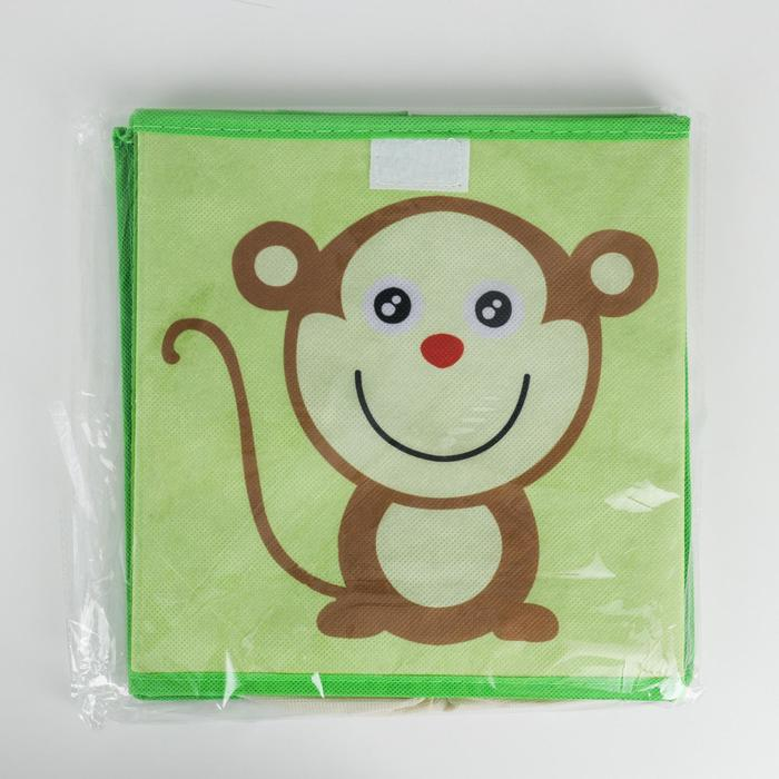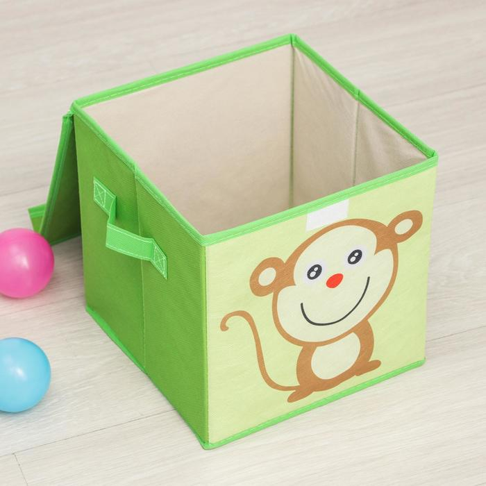 Короб стеллажный для хранения с крышкой «Обезьянка», 25×25×25 см, цвет зелёный