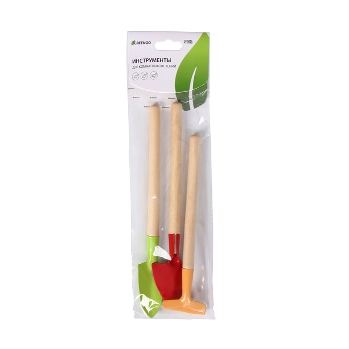 Набор садового инструмента, 3 предмета: грабли, совок, лопатка, длина 20 см, деревянная ручка, МИКС, Greengo