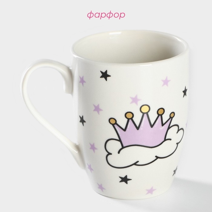 Кружка фарфоровая Доляна «Принцесса», 350 мл, цвет белый