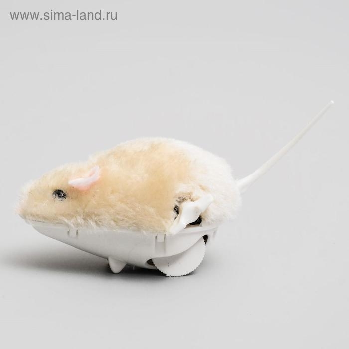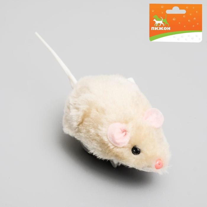 Мышь заводная меховая малая, 8,5 см, бежевая