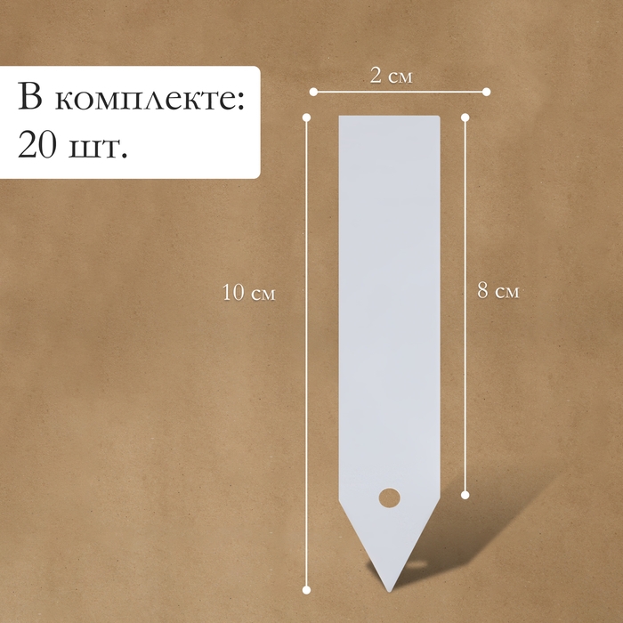 Таблички садовые для маркировки, 15 см, с карандашом, набор 20 шт., пластик, белые