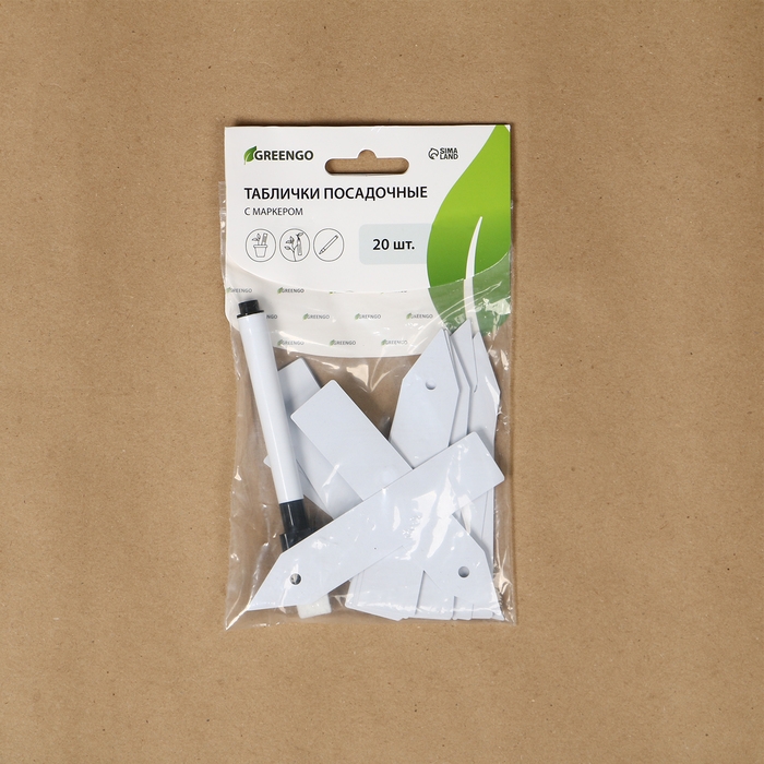 Бирки садовые для маркировки, 10 см, набор 20 шт., маркер, пластик, белые, Greengo