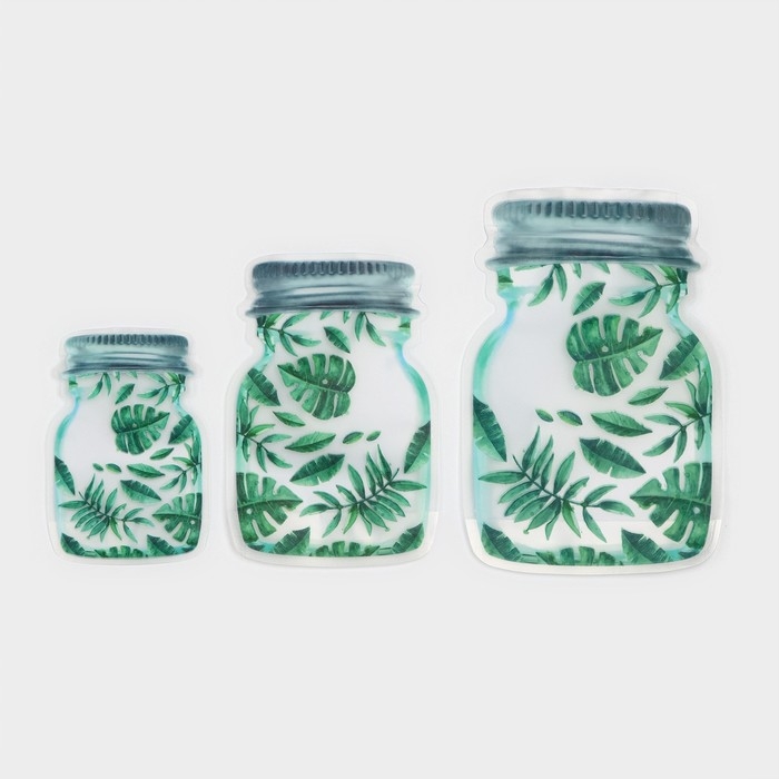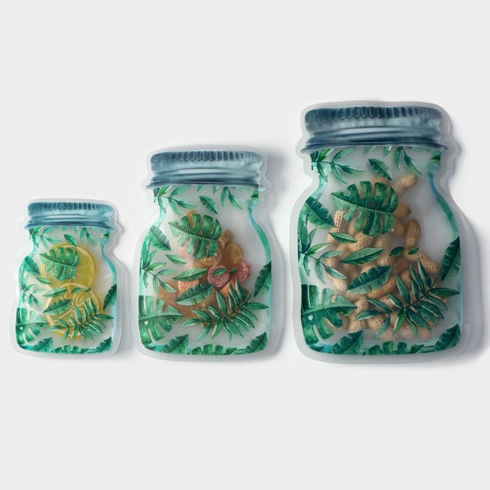 Набор пакетов для хранения сыпучих продуктов Доляна «Листья», застёжка zip-lock, 3 шт, 15×10 см, 20×13 см, 24,5×16,5 см, цвет зелёный