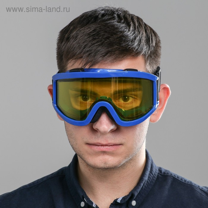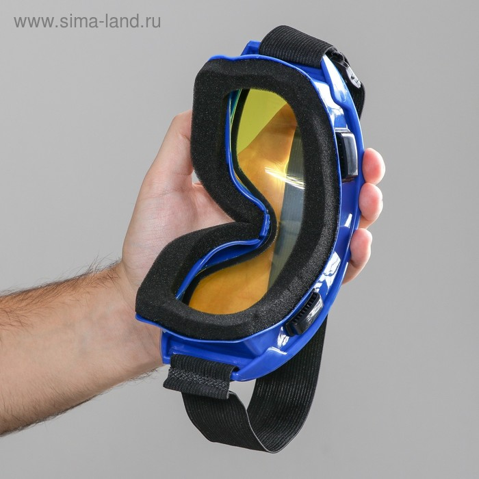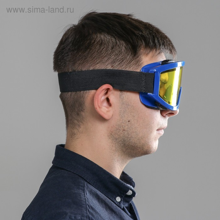 Очки-маска для езды на мототехнике, стекло двухслойное желтое, цвет синий