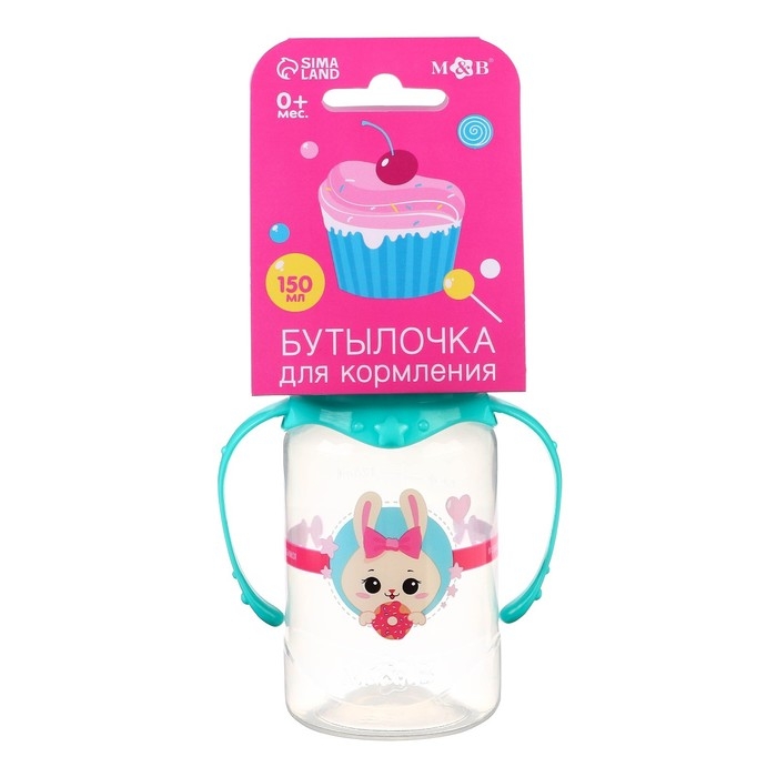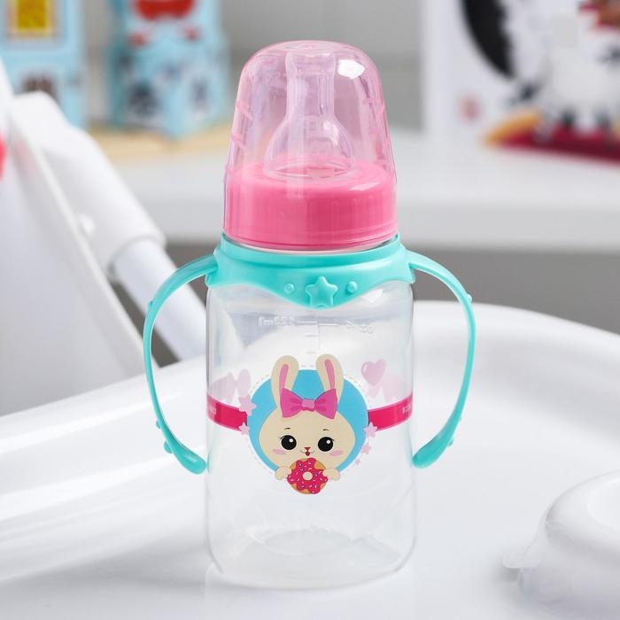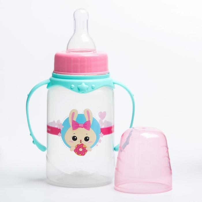 Бутылочка для кормления «Зайка Полли», классическое горло, 150 мл., от 0 мес., цилиндр, с ручками