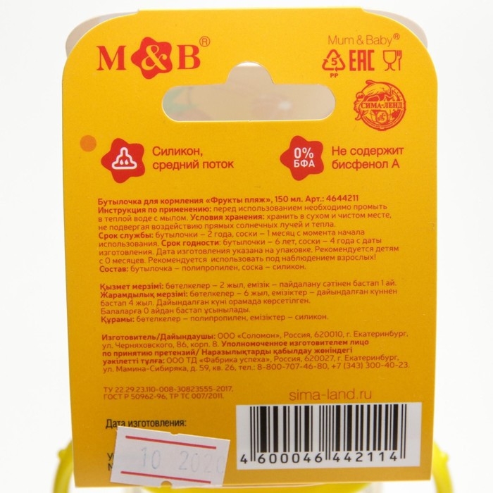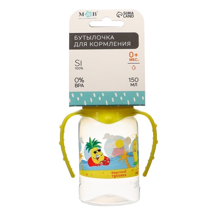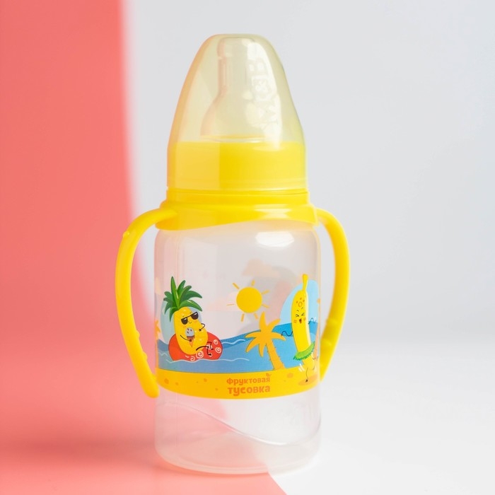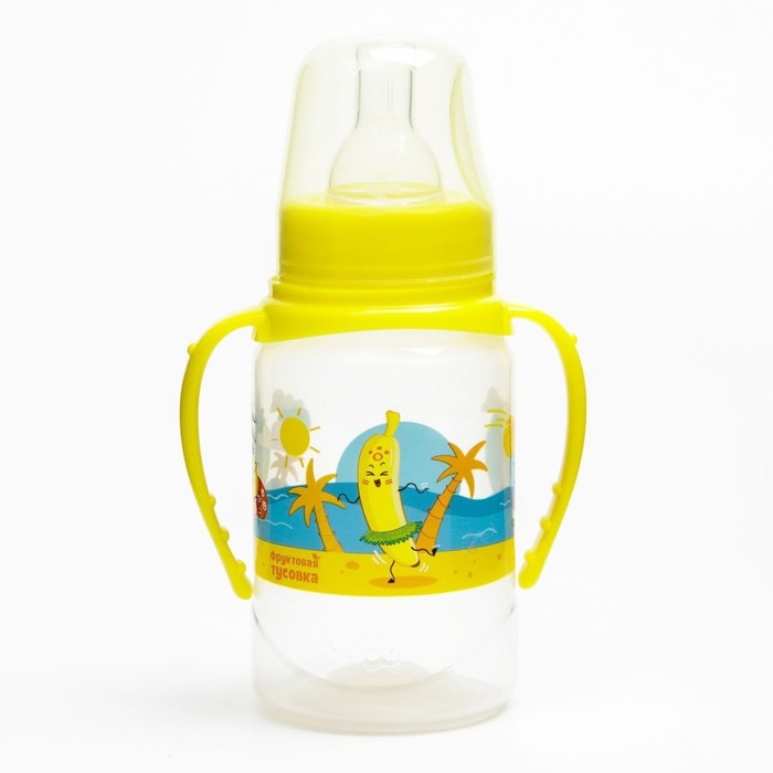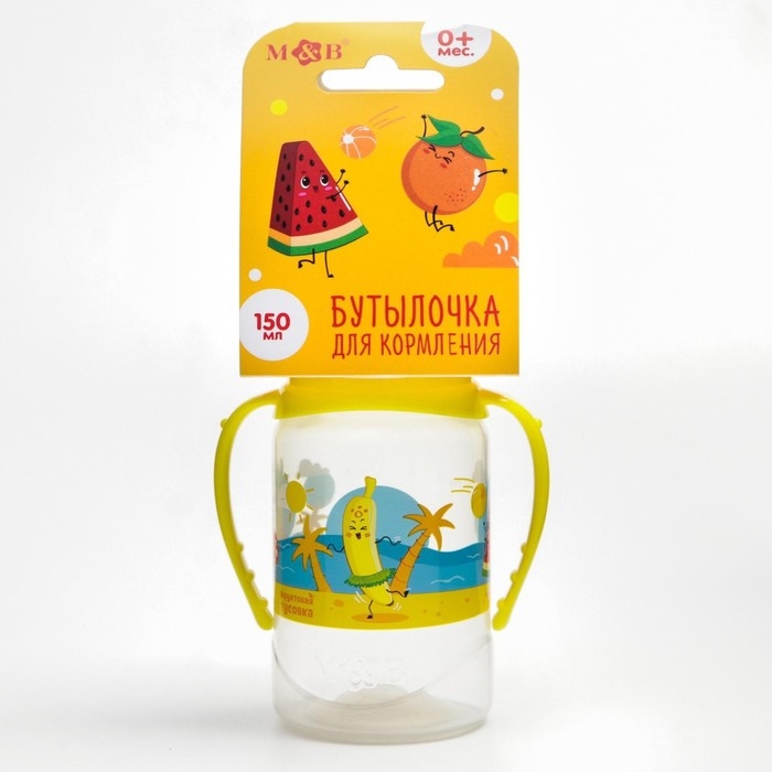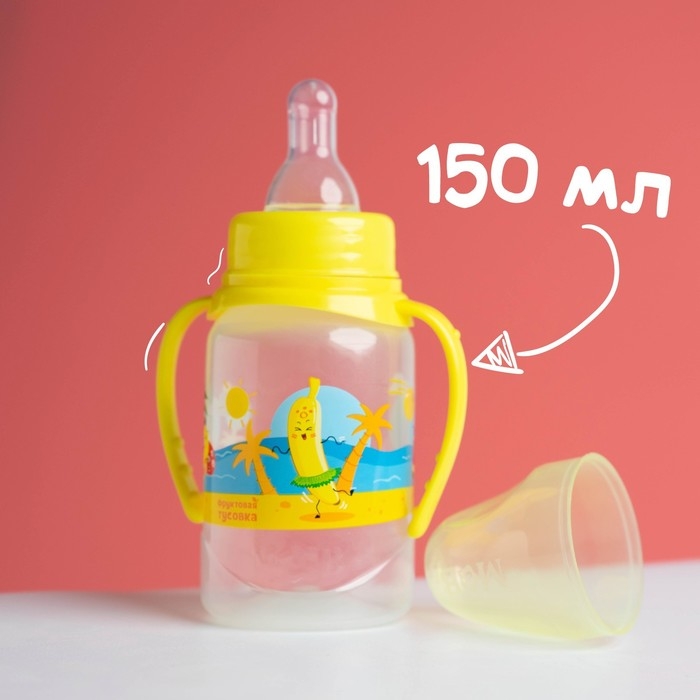 Бутылочка для кормления «Фрукты пляж», классическое горло, 150 мл., от 0 мес., цилиндр, с ручками