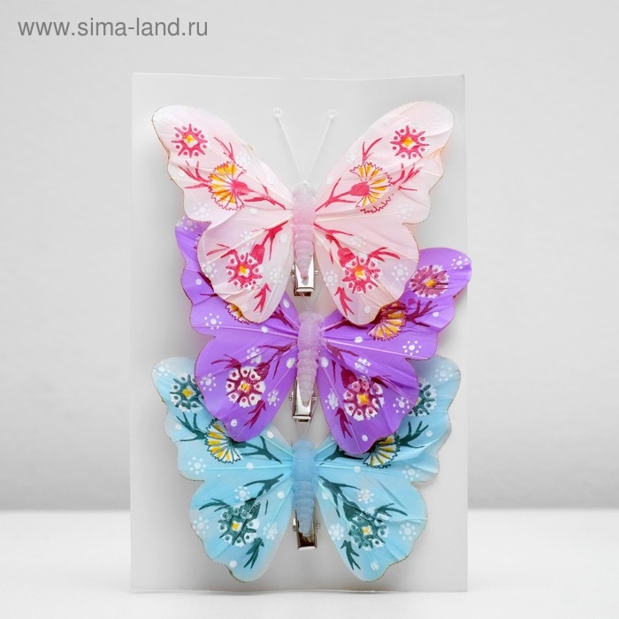 Бабочка для декора и флористики, на прищепке, пластиковая, микс, 1 шт., 5 см и 8 см