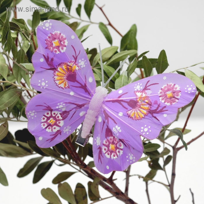 Бабочка для декора и флористики, на прищепке, пластиковая, сиреневый, микс, 1 шт., 8 х 5 х 1 см