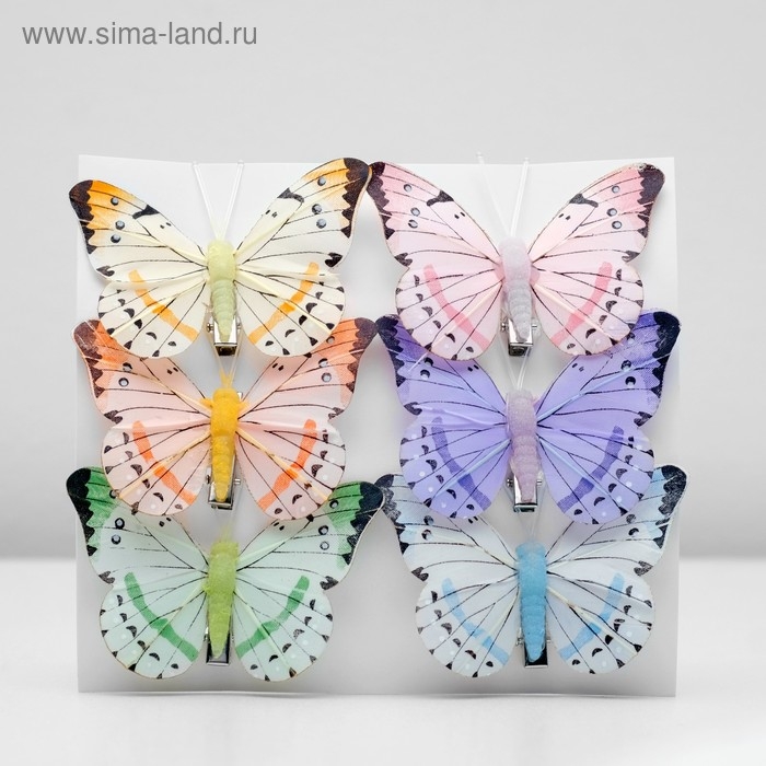 Бабочка для декора и флористики, на прищепке, пластиковая, микс, 1 шт., 5 см и 8 см