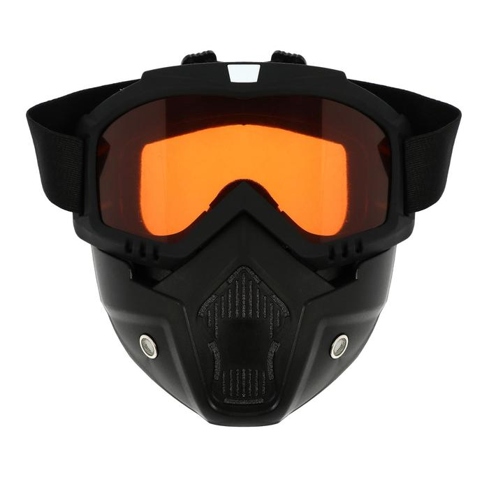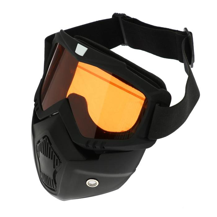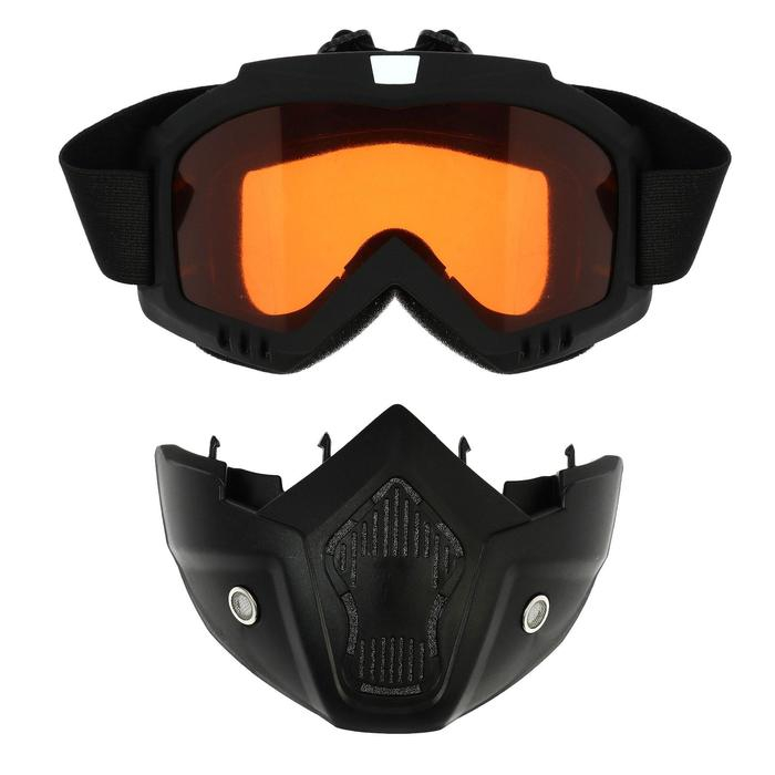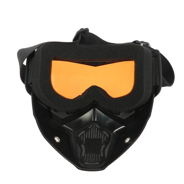 Очки-маска для езды на мототехнике, разборные, стекло оранжевый хром, цвет черный
