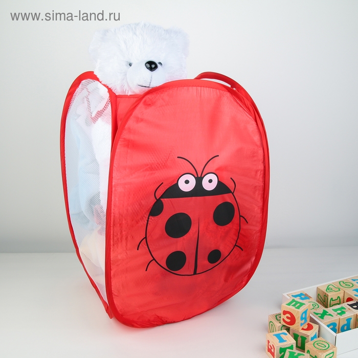 Корзина для игрушек Доляна «Божья коровка», складная, 32×32×52 см, цвет красный