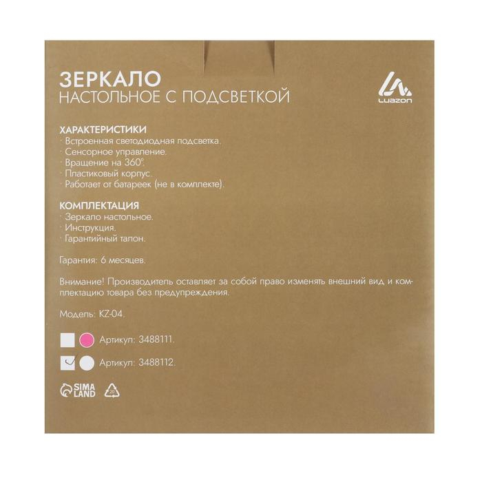 Зеркало Luazon KZ-04, подсветка, настольное, 19.5 × 13 × 29.5 см, 4хААА, сенсорная кнопка