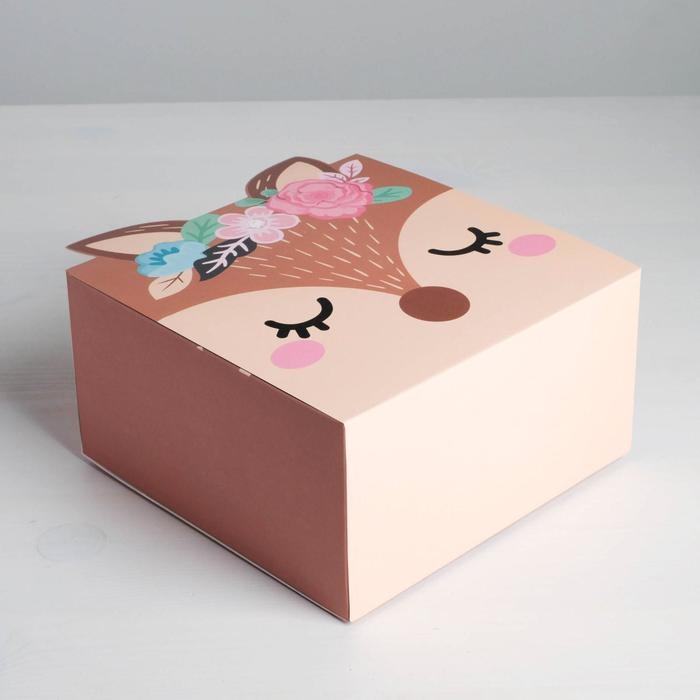 Коробка подарочная складная, упаковка, «Оленёнок», 15 х 15 х 8 см