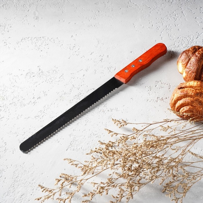 Нож для бисквита, ровный край, ручка дерево, длина лезвия 25 см, цвет коричневый