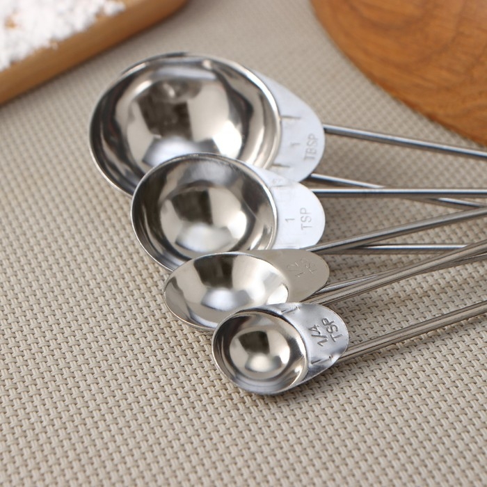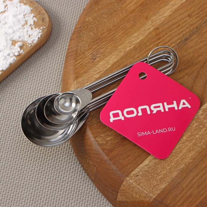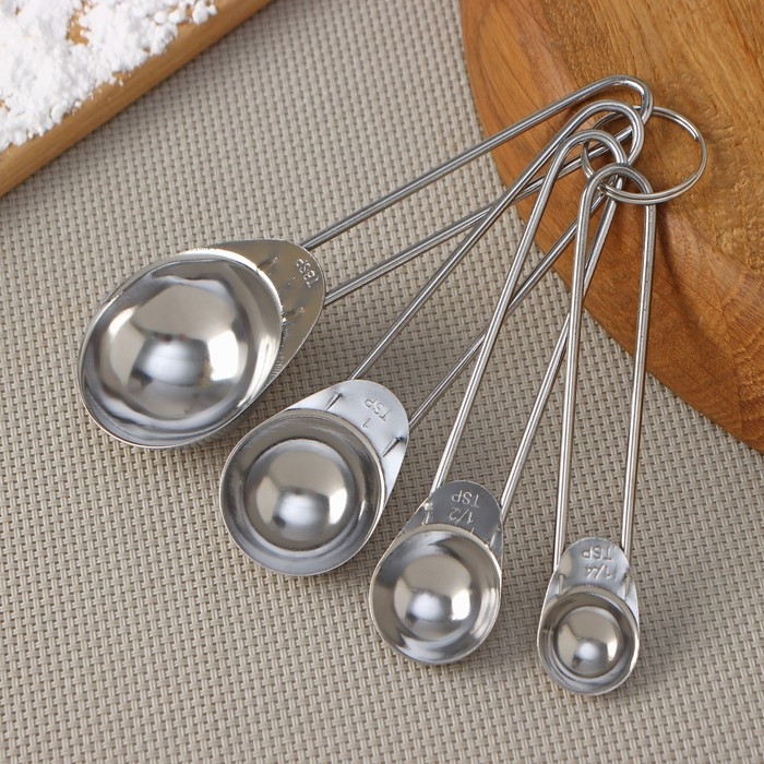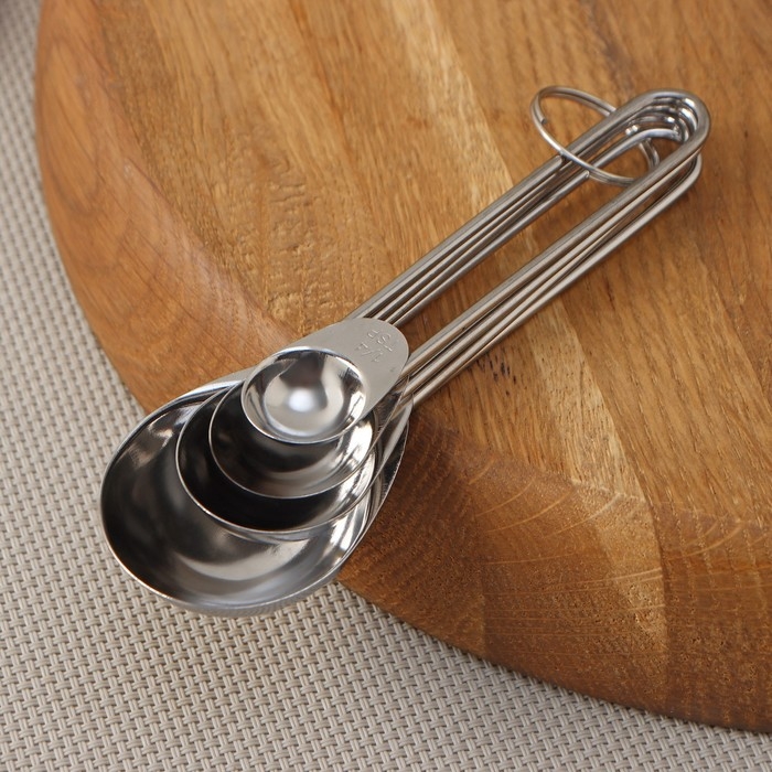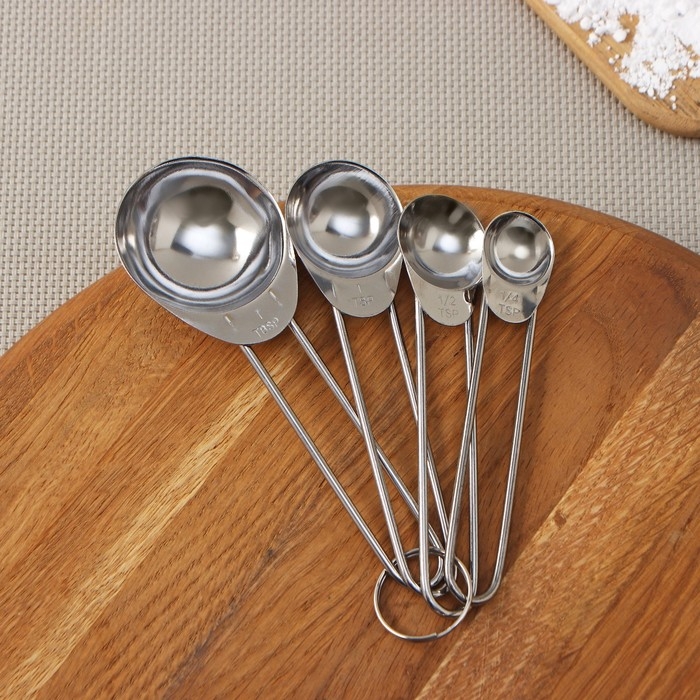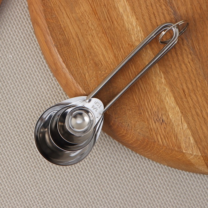 Набор мерных ложек Доляна «Металлик», 4 шт: 1,25/2,5/5/15 мл, цвет серебристый