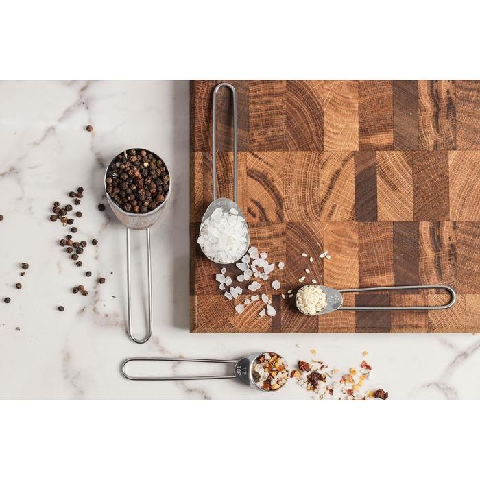 Набор мерных ложек «Металлик» для точного измерения количества продуктов. Предназначены для сыпучих или жидких ингредиентов, таких как специи, мука, вода, молоко, масло. А также для измерения спортивного питания и детских смесей. На каждом приборе есть удобная маркировка, с помощью которой легко определить точное количество необходимого продукта. Сделаны из пищевого пластика.