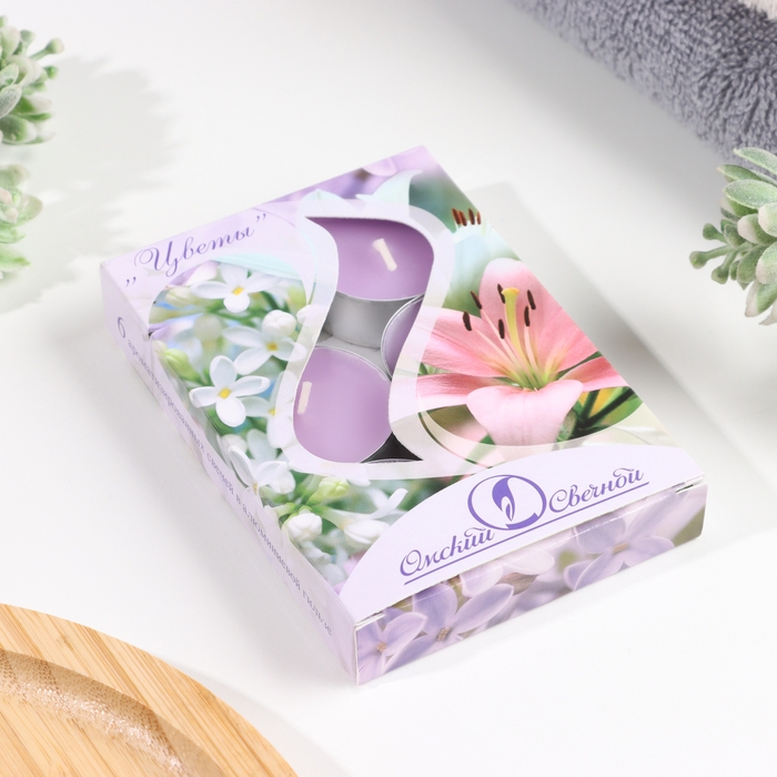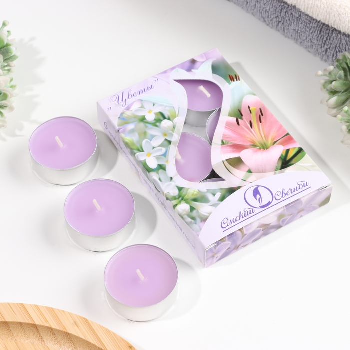 Набор чайных свечей ароматических "Цветы", 3,8х1,6 см, 3,5 ч, 12 г, 6 штук