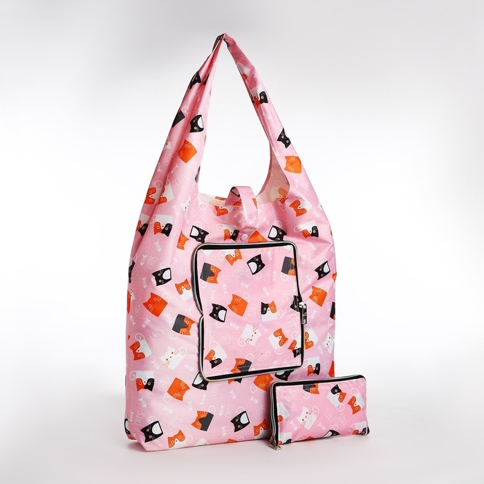 Сумка хозяйственная на кнопке, складная, цвет розовый
