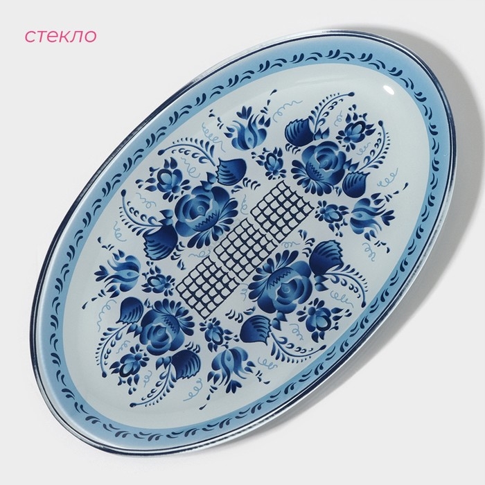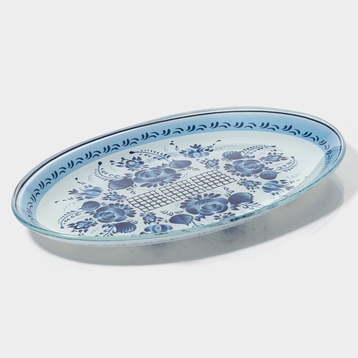 Блюдо сервировочное стеклянное овальное Доляна «Синева», 24,5×15 см, цвет голубой