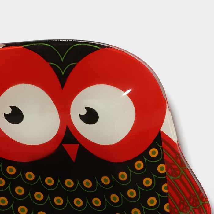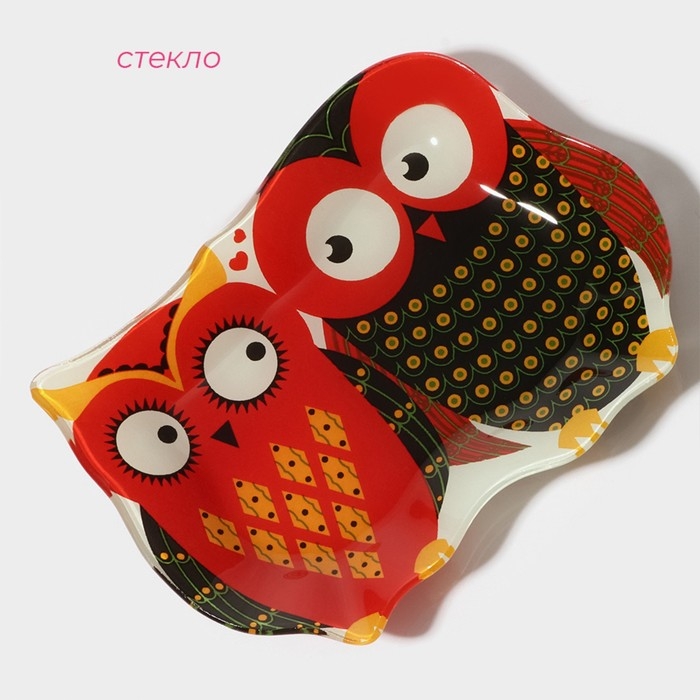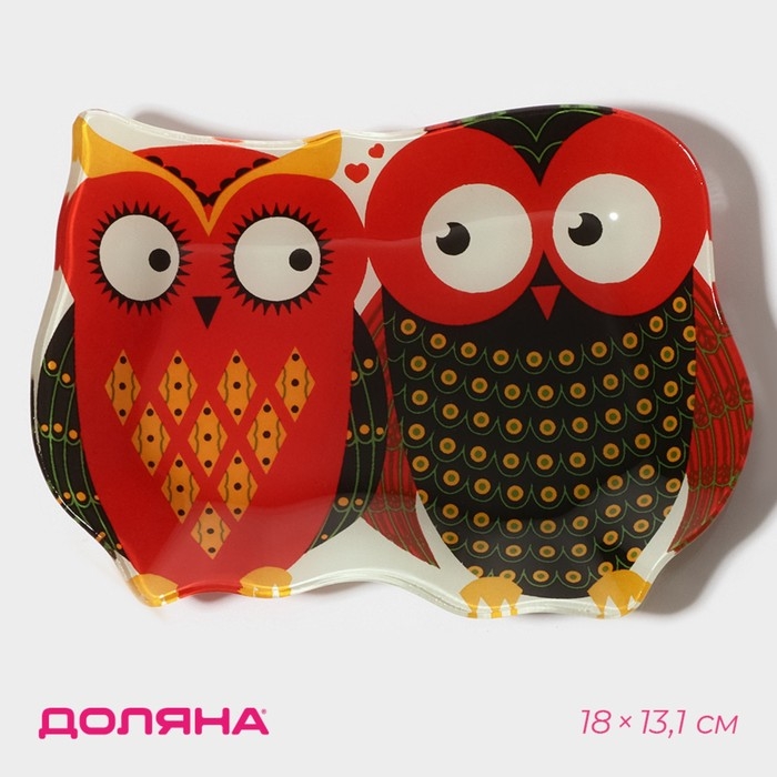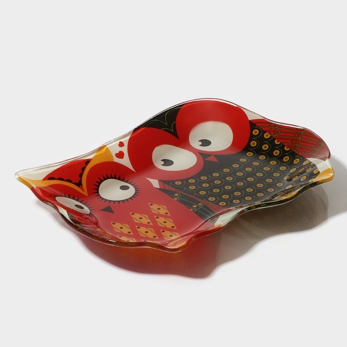 Блюдо сервировочное стеклянное Доляна «Задумчивые совы», 18×13,1×1,9 см, цвет красный