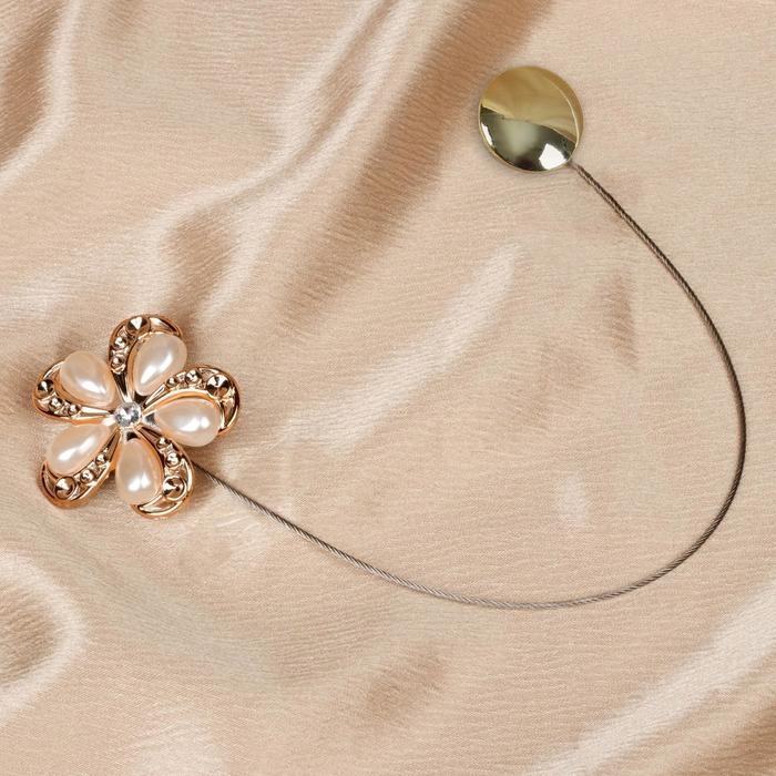 Подхват для штор «Цветок», d = 6 см, цвет молочный/золотой