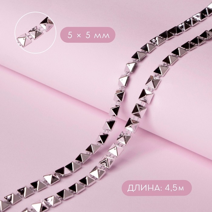 Тесьма декоративная «Квадрат», металлизированная, 5 × 5 мм, 4,5 ± 0,5 м, цвет серебряный