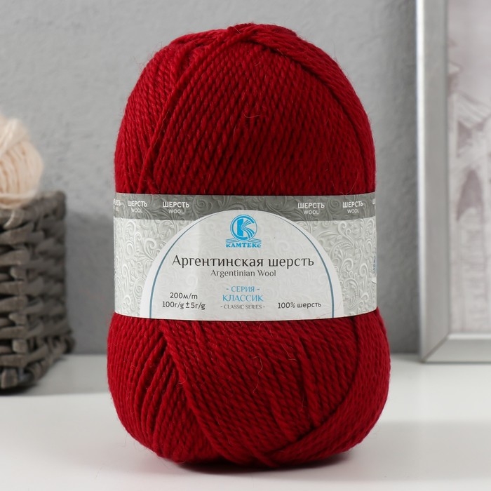 Пряжа "Аргентинская шерсть" 100% импортная п/т шерсть 200м/100гр (091,вишня)