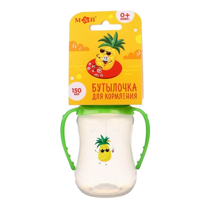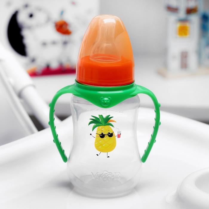 Бутылочка для кормления «Ананасик», классическое горло, от 0 мес, 150 мл., приталенная, с ручками