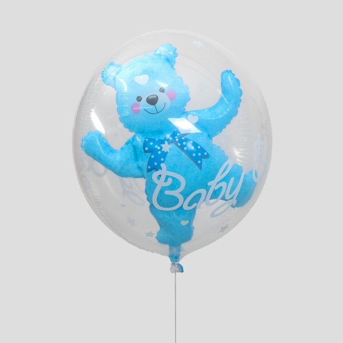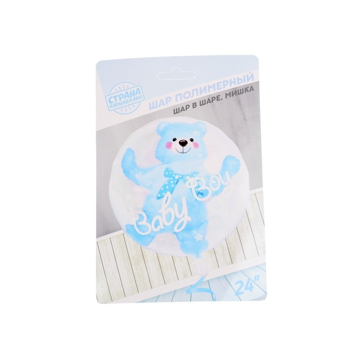 Шар полимерный 24" «Шар в шаре. Мишка», цвет синий
