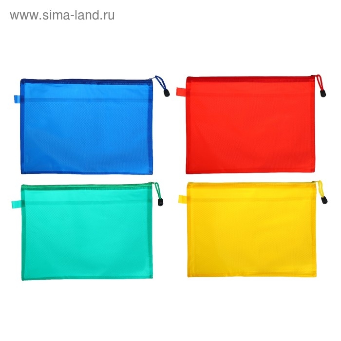 Папка-конверт на молнии Calligrata "Полоска - сеточка" А4, с сеткой внутри, МИКС